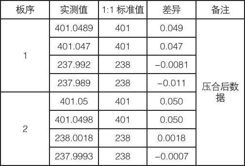 2)一次試做時(shí)鋁板按1:1鉆孔,壓合后NPTH孔到孔距離測量數(shù)據(jù)。