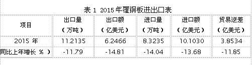 根據(jù)家有關(guān)部門統(tǒng)計(jì)的2015年我覆銅板進(jìn)出口數(shù)據(jù),如圖1和表1所示。