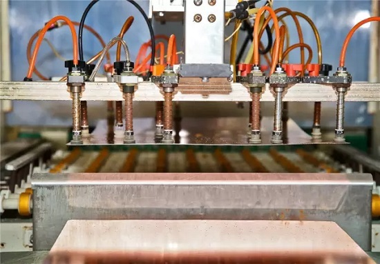 在鍍銅車間,機器手正將一塊電路板垂直“抓”起,水平傳送到一個裝滿化學(xué)液體的反應(yīng)池上方。幾秒鐘后,機器手又將電路板“抓”起來,送入到清水中過水。這條“之”字型的電路板鍍銅流水線約有100米長,卻包含了超過30道工序,每道工序都有極為精確的質(zhì)量控制參數(shù)。我們來算個對比賬: