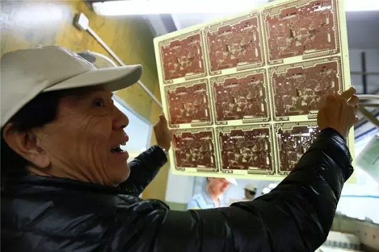 勝得電路版有限公司董事長呂俊宏從1993年到南沙投資辦廠,他說,“以前的電腦像房間一樣大,現(xiàn)在一個智能手機的功能就像一臺電腦。隨著電子技術(shù)不斷發(fā)展,電路板的面積不斷縮小,功能卻更復(fù)雜。”他解釋,“電線線寬從上世紀90年代的幾厘米不斷收窄至現(xiàn)在只有75微米,只有一根頭發(fā)絲直徑的1/4甚至更小,再靈巧的手工和人眼都無法勝任這份工作,只能用精確控制的機器素描才能完成布線。”