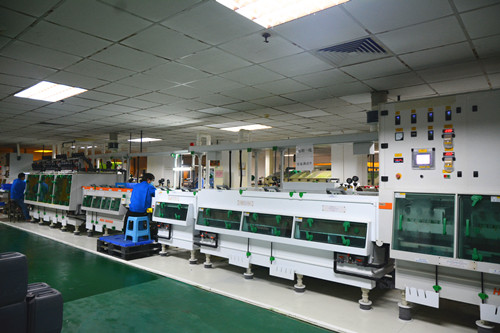 參訪團(tuán)后走訪了珠海鎮(zhèn)東有限公司。珠海鎮(zhèn)東成立于1999年1月1日,公司的核心產(chǎn)品是印制電路板制造用陶瓷刷輥、不織布刷輥、尼龍針?biāo)⑤仭⒒鹕交宜⑤?,另外還有光學(xué)級(jí)曝光玻璃、全系列各類刷板機(jī)系統(tǒng)(21刷/17刷/13刷/9刷/8刷/4刷/2刷/1刷<以及薄板、厚板>)、砂帶研磨機(jī)、銅粉過(guò)濾機(jī)、真空絲印機(jī)和匹配型塞孔油墨/樹(shù)脂等線路板制造用相關(guān)設(shè)備及物料, 并為廣大客戶提供真空絲印塞孔、研磨的代工服務(wù)。在珠海鎮(zhèn)東的生產(chǎn)車間內(nèi),各生產(chǎn)設(shè)備正在正常運(yùn)行,工人們有條不紊地調(diào)整著設(shè)備參數(shù)。據(jù)總經(jīng)理趙其平介紹,2016年開(kāi)工大吉,訂單量穩(wěn)中有升,今后將繼續(xù)提升企業(yè)的科研實(shí)力,以優(yōu)質(zhì)的產(chǎn)品服務(wù)客戶、為客戶創(chuàng)造價(jià)值。