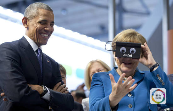 美和歐盟之間的貿(mào)易協(xié)議在不斷地增多, 而美總統(tǒng)奧巴馬和德總理默克爾在今天參觀了一年一度的漢諾威工業(yè)展。 兩位元首嘗試使用了被譽(yù)為“世界上小的3D相機(jī)”的虛擬現(xiàn)實(shí)頭顯。