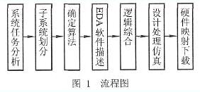 數(shù)字系統(tǒng)的設(shè)計(jì)采用自頂向下、由粗到細(xì),逐步分解的設(shè)計(jì)方法,頂層電路是指系統(tǒng)的整體要求,下層是具體的邏輯電路的實(shí)現(xiàn)。自頂向下的設(shè)計(jì)方法將一個(gè)復(fù)雜的系統(tǒng)逐漸分解成若干功能模塊,從而進(jìn)行設(shè)計(jì)描述,并且應(yīng)用EDA 軟件平臺(tái)自動(dòng)完成各功能模塊的邏輯綜合與優(yōu)化,門(mén)級(jí)電路的布局,再下載到硬件中實(shí)現(xiàn)設(shè)計(jì)。