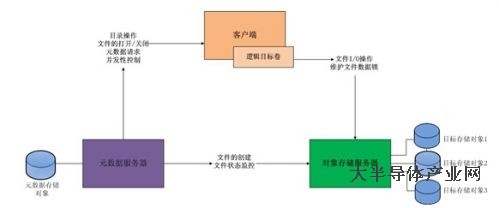 元數(shù)據(jù)服務(wù)器、對象存儲服務(wù)器和客戶端可以分別運行于獨立的操作系統(tǒng)中,也可以運行于一個操作系統(tǒng)內(nèi)部。優(yōu)的解決方案是元數(shù)據(jù)服務(wù)器位于一個單獨的服務(wù)器中,對一個元數(shù)據(jù)存儲對象提供服務(wù),單獨的對象存儲服務(wù)器為多個對象存儲對象提供服務(wù),客戶端也位于單獨的服務(wù)器。其結(jié)構(gòu)如下圖所示,圖中為一個元數(shù)據(jù)服務(wù)器,一個對象存儲服務(wù)器,和一個客戶端的示意圖,元數(shù)據(jù)服務(wù)器服務(wù)于一個元數(shù)據(jù)存儲對象,對象存儲服務(wù)器服務(wù)于三個目標(biāo)存儲對象。