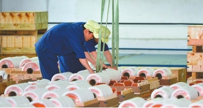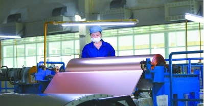 工人正在整理成品銅箔